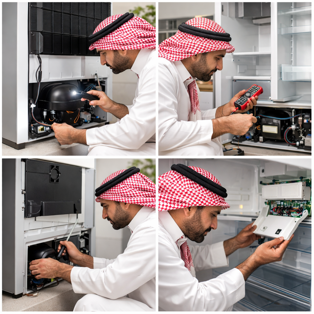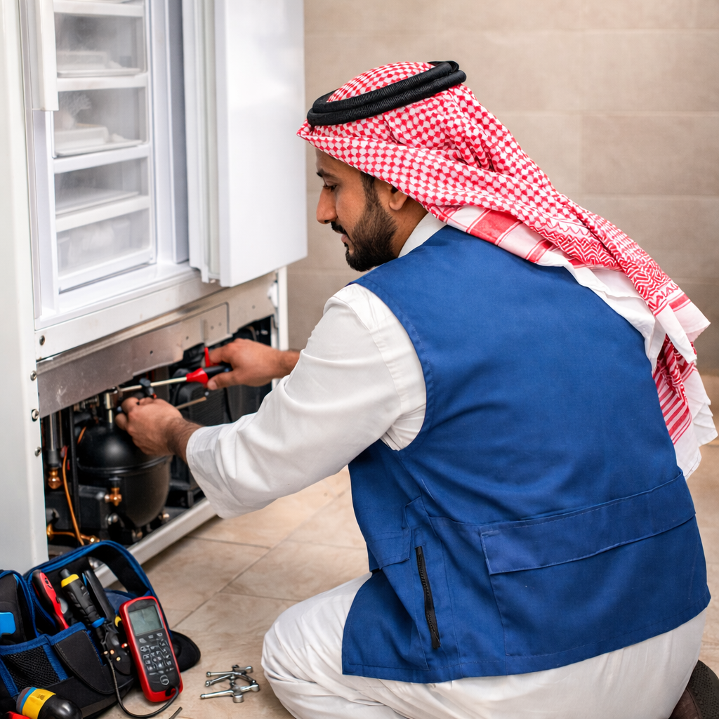 نوفر خدمة تصليح الثلاجات باستخدام قطع الغيار الأصلية والمعتمدة من التوكيلات لإصلاح كل أعطال الثلاجات، عشان نحافظ على طعامك طازج وصحي لأطول فترة ممكنة، مع إمكانية الصيانة في البيت لضمان راحتك والحفاظ على أداء ثلاجتك.